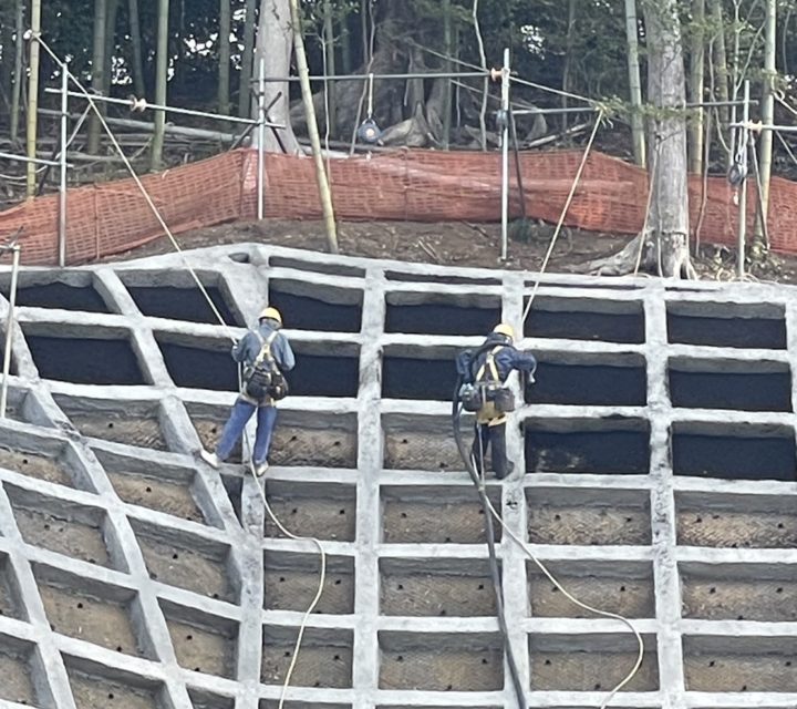 法枠緑化吹付作業
