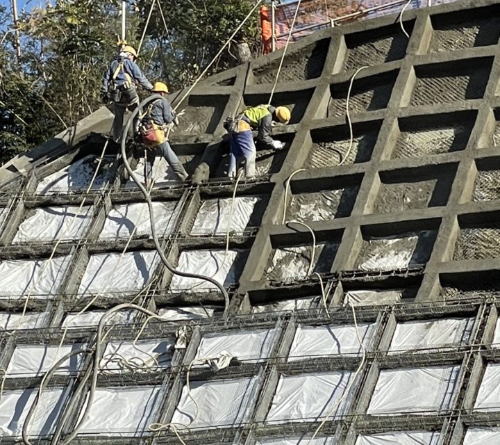 法枠吹付作業